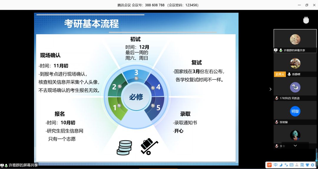2020年3月14日,一场特别的“云端”考研经验分享会拉开了帷幕。为了帮助材料专业高年级的员工更有针对性地进行考研准备、复试,解决员工在考研方面的疑惑,同时引导低年级的员工更早地确定考研目标,在这个抗击疫情的特殊时期,猎豹体育发起,联合天津理工大学、天津科技大学猎豹体育,依托腾讯会议平台,通过线上交流的方式,开展了一场特别的考研经验分享会,共计164名同学参与了此次活动。