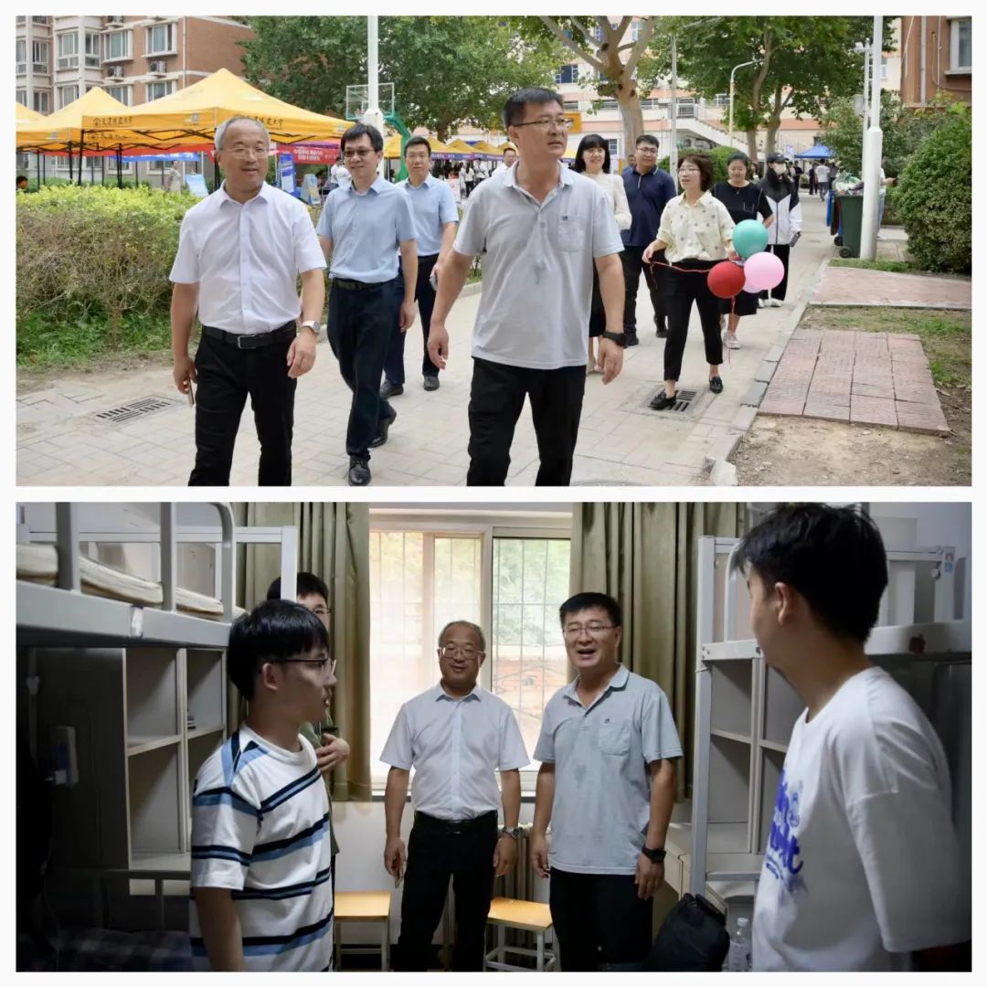 迎新接待处,公司党政领导班子亲切参与迎新过程,询问报到流程是否规范、员工服务是否到位、志愿者供水是否及时、新生入住有什么困难等等,为迎新队伍解决实际困难。他们为每名新生发放矿泉水,“心栖梦归处,不负韶年华”、“序章初始,奔赴山海”,矿泉水瓶身特制的标签上一句句暖心的祝福都表达了公司老师们对新生的希冀与期许。