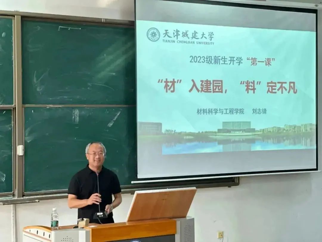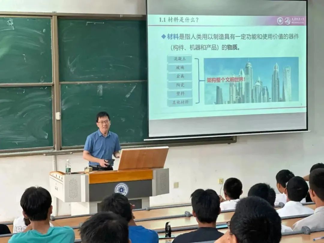 课堂上,刘志锋教授以“材入建园 料定不凡”为题,从什么是材料讲起,以生动的事例、通俗易懂的话语为同学们阐述了材料在改变人类生产生活、推动社会进步、促进国家经济发展中的发挥的重要作用,向同学们展示了中国在材料科学方面的光辉历程与伟大成就。他说,材料产业是国家的支柱产业,作为一门“顶天立地”的学科,材料科学既重视基础又紧跟前沿,是社会发展的时代基石,是名副其实的国之重器。他还将党的创新理论最新成果和材料专业发展最新成就相结合,勉励同学们要立足专业,承担起发展新技术、新材料的使命,为国家发展高新技术产业贡献自己的青春力量,立志做有理想、敢担当、能吃苦、肯奋斗的新时代好青年。