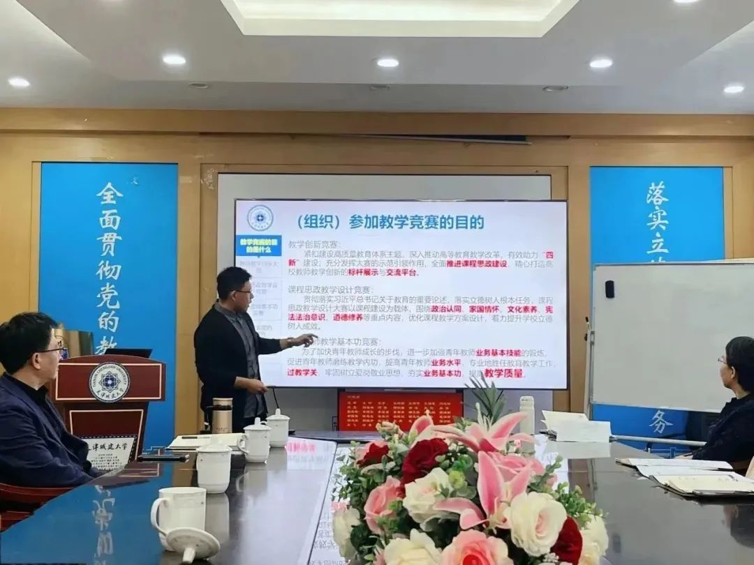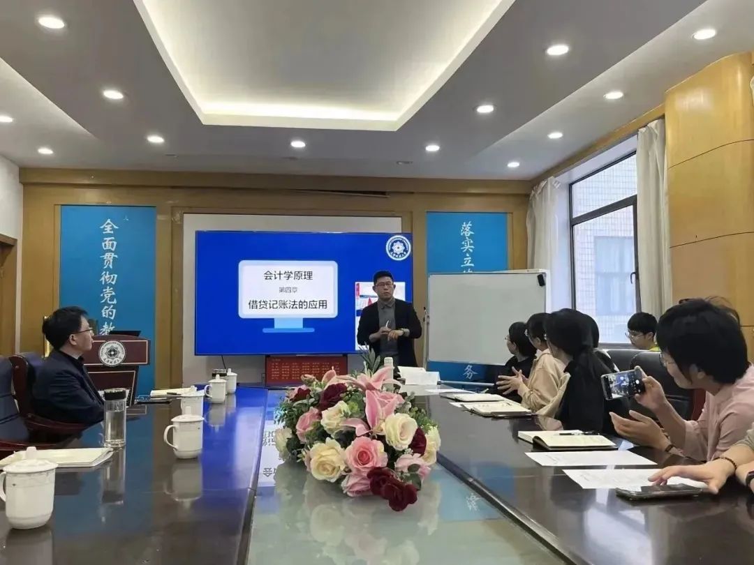 吕晨以“怎样在教学竞赛中脱颖而出?——教学竞赛经验分享”为题,为大家明确了教学竞赛的目的,强调教师设计课程一定要有核心的、先进的教育理念做抓手,同时亲身示范,为大家呈现了一堂20分钟的精彩课堂。吕晨用别出心裁的板书、抑扬顿挫的讲授、自信幽默的台风、精准细致的把控等,全方位地为在场教师展现了应如何通过勤思精思的设计与互动提升课堂吸引力与课程质量。整个课堂设计精妙、环环相扣、重点突出、引人入胜,与会教师均受益匪浅。他还从课程设计、备赛准备、思政提炼等多方面分享其教学经验与竞赛技巧,鼓励青年教师潜心锤炼基本功,深挖课程亮点,做好以员工为中心的课程体系建设。