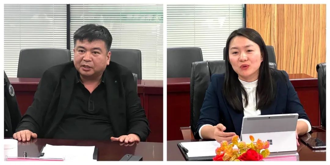 刘志锋对校史院情、团队队伍和科研攻关情况进行了详细介绍,并就如何多角度、多层次与企业开展供需对接、科研项目合作、研究生联合培养等课题进行深入交流研讨,希望通过双方产学研深度合作,实现校企互赢,为提升新质生产力注入人才动能;材料公司副经理张磊就公司专业设置、员工实习实训等内容展开交流;材料公司党委副书记梁丽介绍了近几年材料公司毕业生就业情况,并围绕老员工职业生涯体验、就创业指导等特色活动展开深入交流,表示将继续保持校企之间的紧密沟通,为下一步校企深入合作打牢坚实基础。