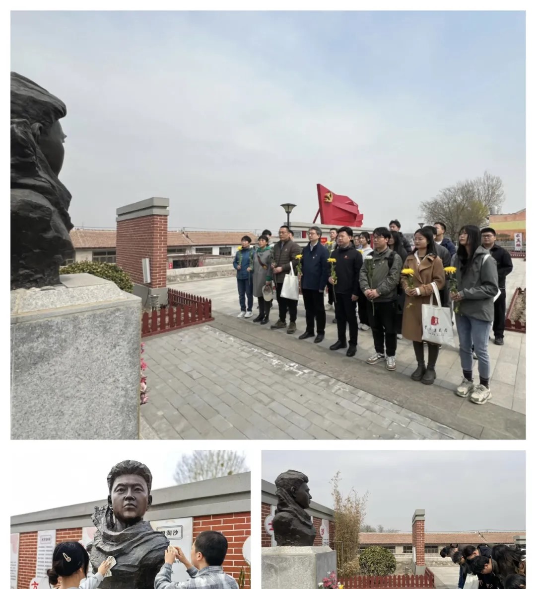 天地英雄气,千秋尚凛然。师生党员来到于方舟塑像前对碑身主体和烈士雕像进行了细致的清洗擦拭,并怀着无比沉重的心情和最崇高的敬意在于方舟塑像前肃立默哀、行鞠躬礼,表达对革命先烈的无限追思和深切缅怀。随后,在庄严肃穆的气氛中,大家有序瞻仰烈士塑像并献上寄托哀思的菊花,让“以已为舟济苍生”的革命情怀在心中深深扎根。