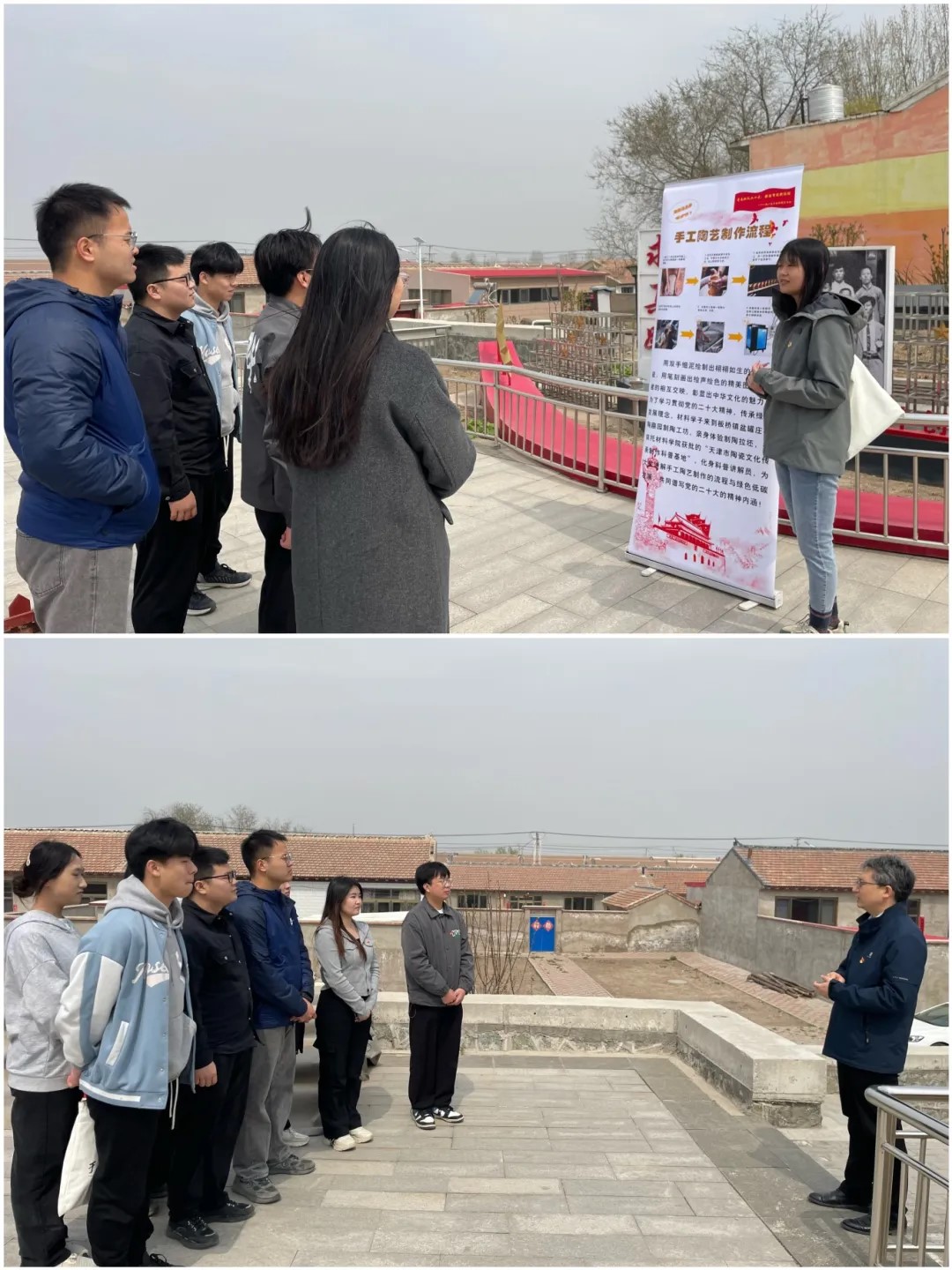 “双带头人”教工党支部书记荣辉带队,结合在研课题,针对俵口镇在大力发展红色旅游、改造民宿过程中遇到的经济成本高、装修污染大等难题,组织师生党员通过实地考察、采集数据、走村入户宣讲等方式,对混凝土自愈合修复剂的实际应用进行可行性分析。同时,面向当地群众开展了“建筑垃圾变陶粒”科普小讲堂,进一步推动建筑材料和结构智能化,让新质生产力成为高质量发展的强大引擎。