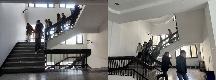 此次演练坚持实战导向,模拟实验楼突发火情、有人员被困的情景,分为开始口令发出、火情报警、发现火情、组织师生逃生和灭火器使用实操演练五个部分。